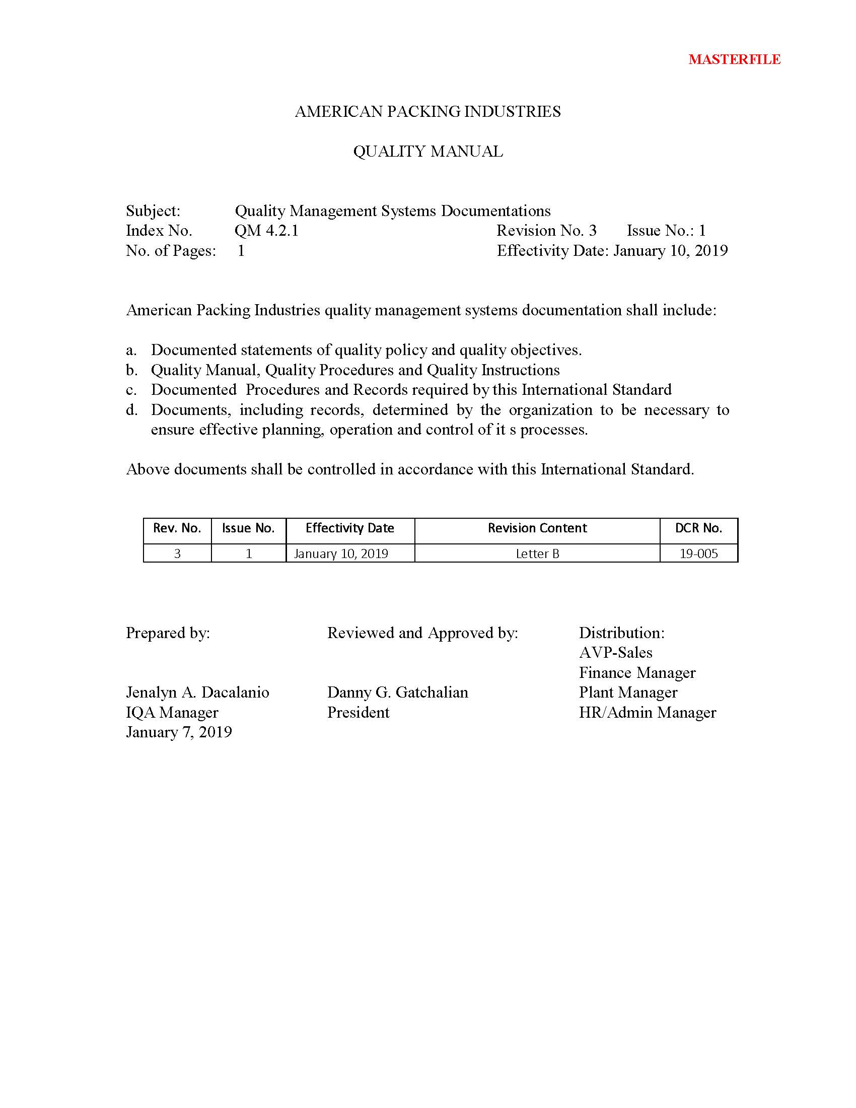 QUALITY MANAGEMENT SYSTEMS DOCUMENTATIONS