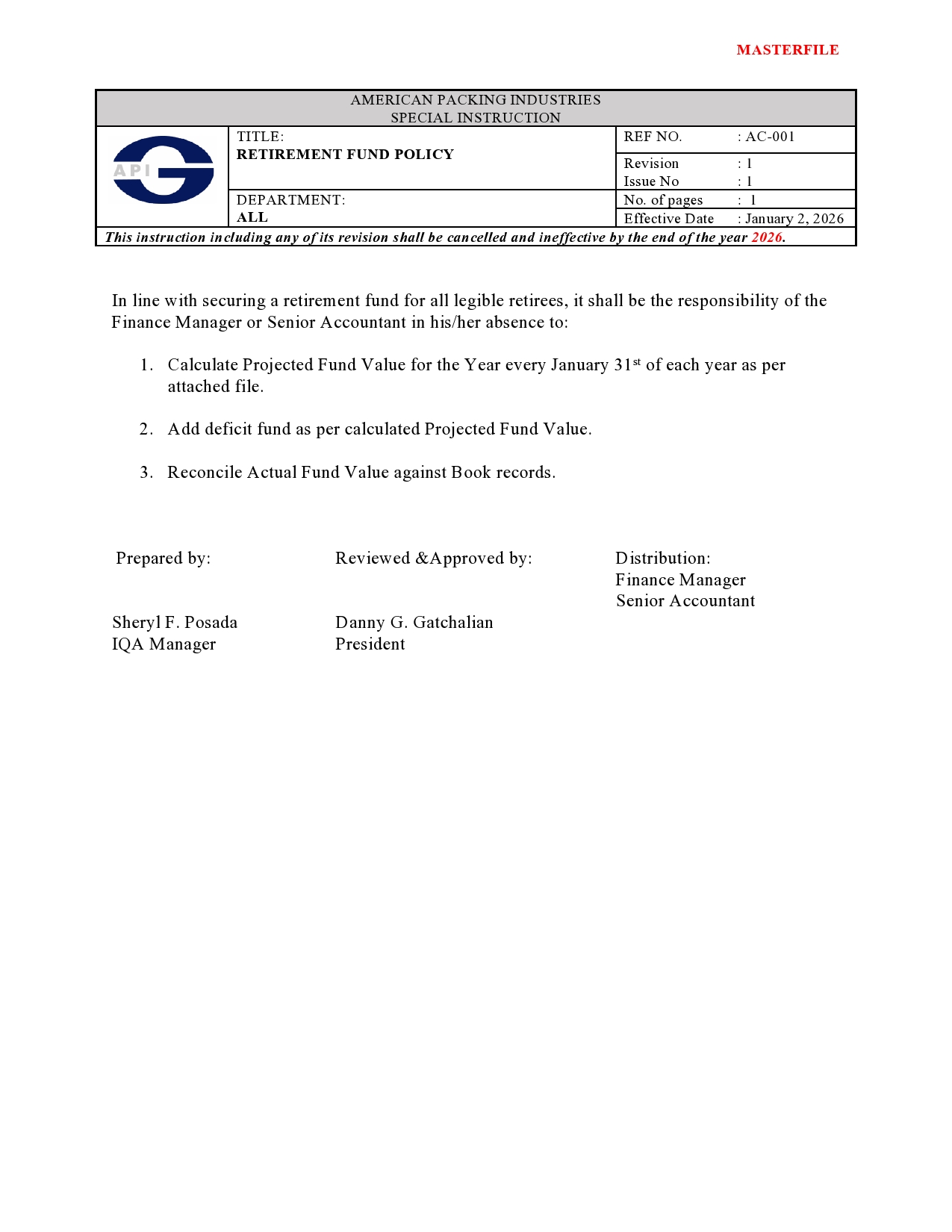 RETIREMENT FUND POLICY